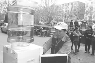 3月25日上午8時許,車站街辦事處向陽社區(qū)小廣場像往常一樣熱鬧,老人們聚在一起鍛煉身體,有說有笑。廣場一角,火鍋店老板滑姣平卻早早開了店門,搬出剛剛購買的飲水機,裝上剛送來的純凈水,拿出成袋的一次性口杯,接通電源。