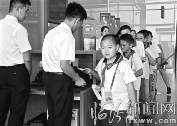 孩子們在工作人員的帶領(lǐng)下,從航站樓二層大廳出發(fā),來到值機柜臺前?!靶∨笥巡灰?,排隊站在黃線外,挨個領(lǐng)取登機牌……”工作人員面帶微笑提醒著孩子們,“拿上登機牌后要到安檢通道接受檢查哦?!痹诎矙z處,工作人員認真核對孩子們手中的機票,仔細檢查隨身攜帶物品,孩子們十分配合工作人員,井然有序地排隊通過,通過安檢后,到達候機廳,最終由六號登機口登機。乘機體驗結(jié)束后,孩子們還參觀了機場休息室和貴賓廳等地,工作人員則穿插講解了航空知識,孩子們滿載而歸。