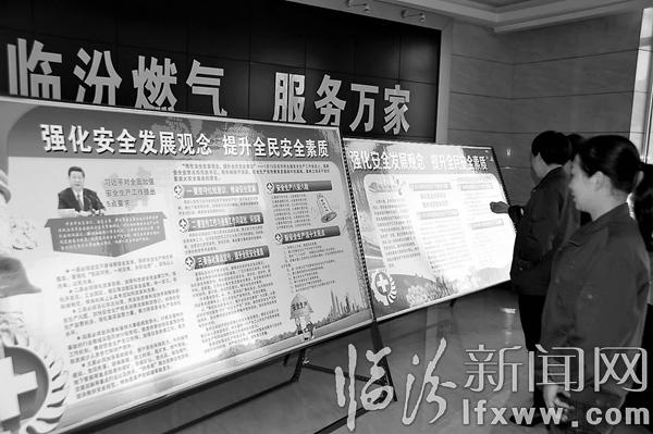 臨汾新聞網(wǎng)訊 不論是機關(guān)樓的走廊、管理站的辦公室,還是門站的運行室、管線所的物品庫,走進臨汾燃氣公司,處處都張貼懸掛著醒目的安全標示、警示標語,處處都凝結(jié)著濃厚的安全氛圍。