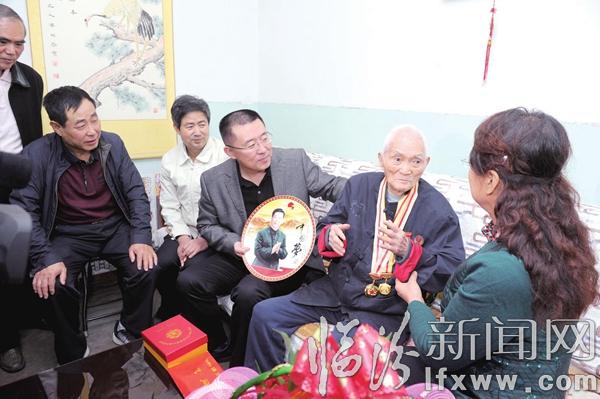 臨汾新聞網(wǎng)訊 日前, 在我市一百零二歲高齡的老紅軍石友玉家里,省、市老干部局的工作人員為石友玉老人送去了慰問金、獎?wù)潞臀繂柶?。?jù)悉,在紀(jì)念紅軍長征勝利八十周年之際,我市的老紅軍石友玉梁斌先后收到了中央、省、市相關(guān)部門的慰問金、 獎?wù)乱约拔繂柶?,工作人員還現(xiàn)場為他們送去健康祝福。