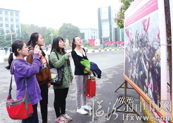 臨汾新聞網(wǎng)訊 近日,山西師范大學(xué)舉辦了紀(jì)念紅軍長(zhǎng)征勝利80周年系列活動(dòng),通過(guò)展出20余幅長(zhǎng)征主題版面、組織長(zhǎng)征主題歌唱比賽等,表達(dá)了師生對(duì)革命烈士的深切悼念與崇高敬意。圖為學(xué)生正在觀看紅軍長(zhǎng)征勝利80周年展板。 饒二保 蘇繼文 攝