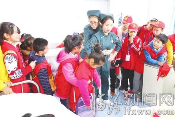 如果突發(fā)意外事件,患者急需救治,目擊者若懂得一些急救常識,就會給生命創(chuàng)造機會。在示教室,幾位護士為小記者演示了心臟驟停及氣道異物梗阻的急救方法,讓他們懂得“時間就是生命”的含義。