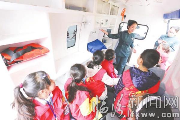 “你們救治過多少病人?”“救護車出動時,你們會有緊迫感嗎?”……到了采訪環(huán)節(jié),小記者將醫(yī)護人員團團圍住,爭先恐后地拋出一道道問題。得到相應(yīng)的答案后,他們的臉上露出佩服的神情。