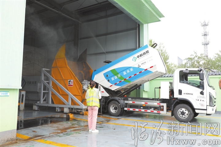 在翻新后的自卸式垃圾壓縮站,記者看到一輛18噸的垃圾壓縮車駛來,將封閉式車廂內(nèi)收集來的生活垃圾一股腦倒入垃圾壓縮站。作業(yè)過程中,智能噴霧系統(tǒng)定時釋放除臭劑,負壓除臭裝置通過風(fēng)機和過濾系統(tǒng)吸附異味氣體,將臭氣分子降解成二氧化碳、水等無害物質(zhì)之后排放,降低臭味擴散,解決揚塵、廢氣彌漫問題。工作人員還會每日定時使用環(huán)保消毒劑和除臭劑進行定時噴灑消殺,配合高頻次清潔工作,使得垃圾中轉(zhuǎn)站周邊空氣不再“臭氣熏天”、污水橫流。此外,垃圾清運車每日作業(yè)后,司機師傅都要及時對車身、輪胎及垃圾箱進行沖洗,清除殘留污漬,避免異味和細菌滋生。公司還建立養(yǎng)護臺賬,記錄沖洗、檢修及更換配件情況,保障轉(zhuǎn)運效率與環(huán)境衛(wèi)生。
