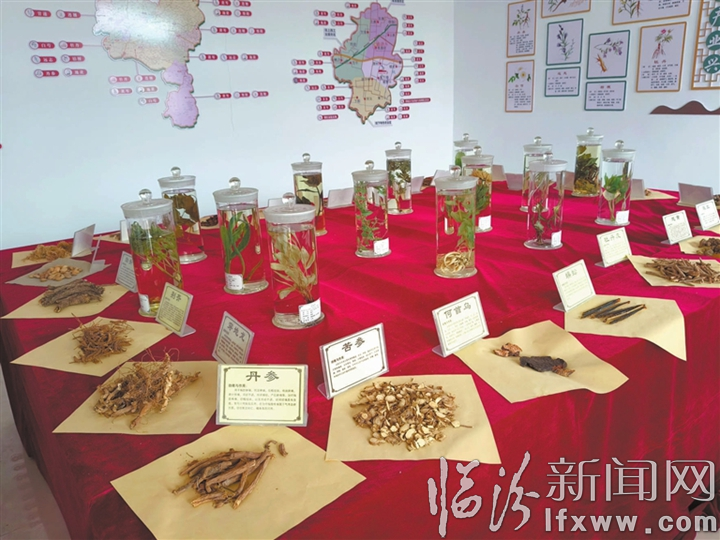 步入其中,偌大的長條桌上,白芍、牡丹、遠志、桔梗、丹參、地黃等各類中藥材樣品映入眼簾,種類琳瑯滿目;墻上,“全國藥材種植產(chǎn)區(qū) 十七大藥材種植分布圖 東下坪藥材銷售走向圖”“翼城縣藥材種植分布圖”“南唐鄉(xiāng)藥材種植及藥材合作社分布圖”勾勒出產(chǎn)業(yè)的遼闊版圖,瞬間便能感知這個藥材專業(yè)村的發(fā)展思路和產(chǎn)業(yè)脈搏——這里不僅是翼城縣中藥材集散中心,更是東下坪村作為全縣聞名的藥材專業(yè)村的一個生動縮影。