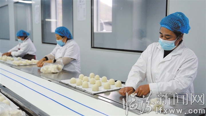 李子坪村則把傳統年饃做成了富民產業(yè)。該村借鑒先進地區(qū)經驗,通過縣級配套、村級自籌,投資150余萬元建起藺鄉(xiāng)年饃加工廠,購置了全自動生產線,配套建設了面粉倉庫、食品化驗室、冷庫等基礎設施。李子坪村黨支部書記、村委會主任王曉斌介紹:“我們的年饃采用傳統工藝制作,口感松軟、香味濃郁,年產量能達到5000箱,吸納了村內剩余勞動力30余名?!?/p>