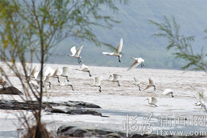 臨汾新聞網(wǎng)訊 寒露時節(jié),吉縣壺口瀑布附近水域水鳥日漸增多,一些向南方遷徙的候鳥選擇在此落腳。它們或休憩、或戲水、或展翅飛翔,為壺口瀑布景區(qū)增添了一道靚麗風(fēng)景。圖為10月8日在瀑布上游水域拍攝的水鳥。