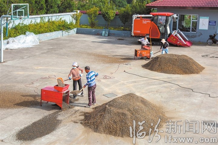 臨汾新聞網(wǎng)訊 近期,連續(xù)降雨給秋收帶來不利影響。為減少農(nóng)戶損失,我市各地積極協(xié)調(diào)機械與人力,緊盯雨停有利時機,全力幫助農(nóng)戶搶收農(nóng)作物,確保應(yīng)收盡收、顆粒歸倉。圖為近日,鄉(xiāng)寧縣管頭鎮(zhèn)東團村村民趁晴好天氣晾曬油葵。