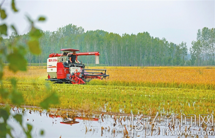 臨汾新聞網(wǎng)訊 10月16日,在襄汾縣襄陵鎮(zhèn)屯李村,農民駕駛稻谷收割機在田間收割水稻。