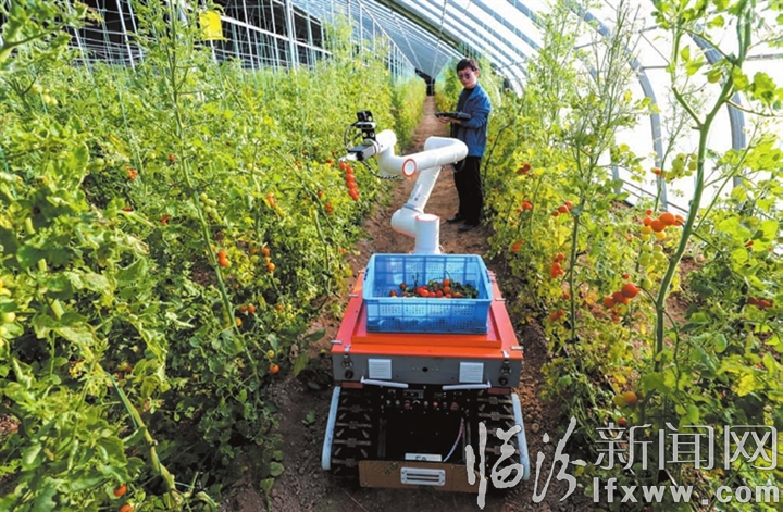 臨汾新聞網訊 12月25日,在曲沃縣國家現(xiàn)代農業(yè)產業(yè)園“智慧菜谷”,智能番茄采摘機器人正在園區(qū)進行采收作業(yè)。該園區(qū)融合先進的機器視覺和人工智能技術,能精準感知農作物并對周圍環(huán)境進行分析,實現(xiàn)了番茄采摘的精準化、高效化。