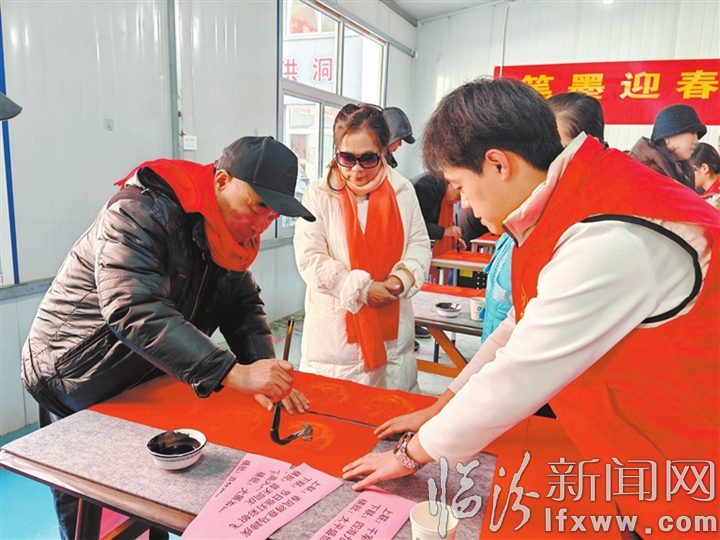 臨汾新聞網(wǎng)訊 新春將至,年味漸濃。日前,洪洞縣廣勝寺鎮(zhèn)山焦社區(qū)舉辦“筆墨迎春 福滿社區(qū)”寫春聯(lián)送祝?;顒?dòng),當(dāng)?shù)貢◥酆谜邆儞]毫潑墨,為社區(qū)居民送上真摯的新春祝福。