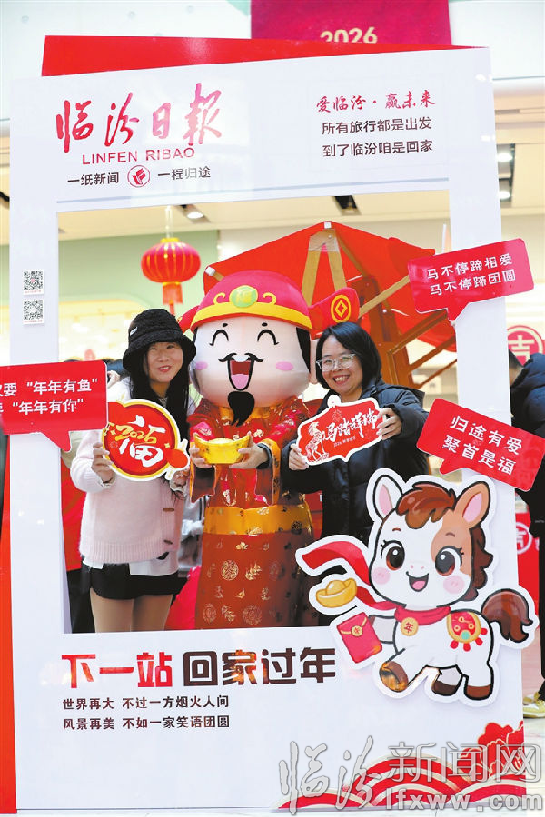 市民在臨汾日報(bào)主題打卡點(diǎn)拍照留念。