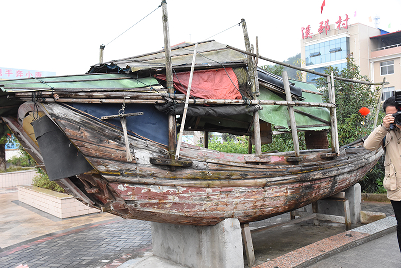 停放在溪邳村廣場(chǎng)的一艘破舊漁船,曾經(jīng)是連家船民的海上“居所”。中國(guó)網(wǎng)信網(wǎng) 陳舞陽攝