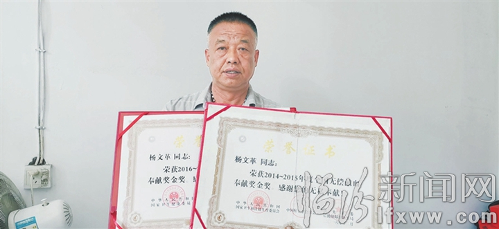 楊文革手捧榮譽(yù)證書(shū)