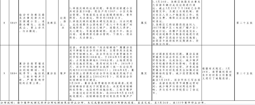 中央環(huán)境保護督察移交舉報案件臨汾市邊督邊改情況表