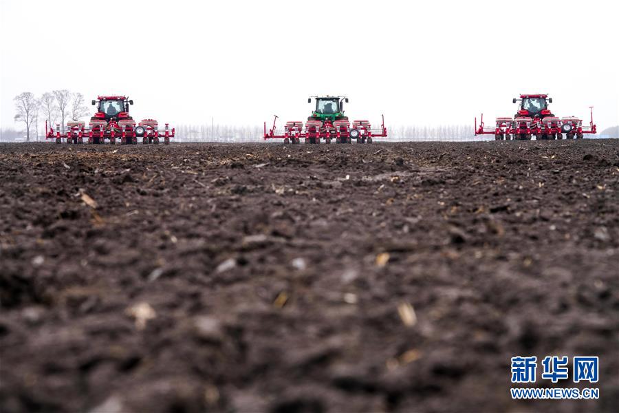拖拉機(jī)在哈爾濱雙城區(qū)進(jìn)行機(jī)械化玉米播種作業(yè)(4月20日攝)。新華社記者 王松 攝