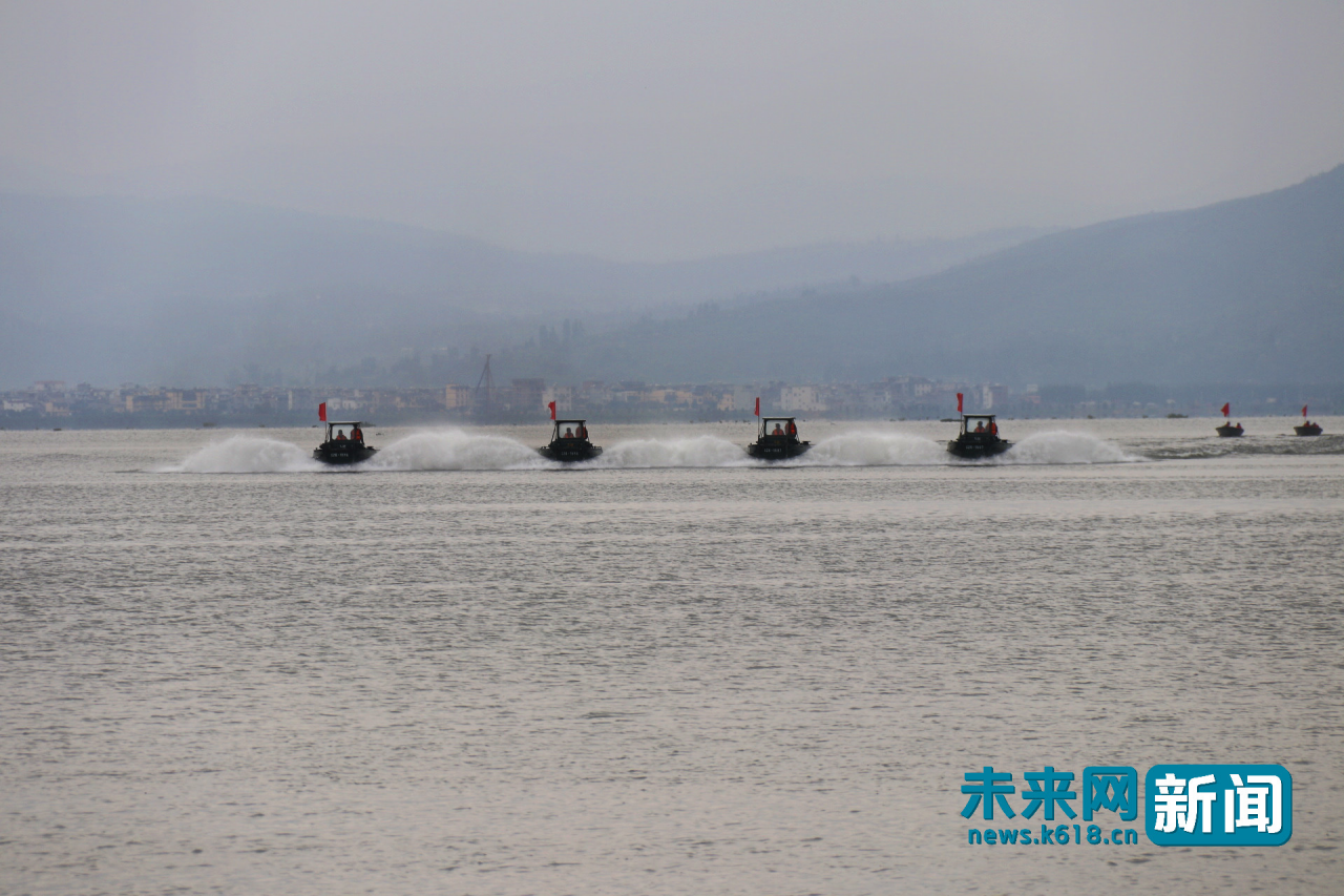 圖為汽艇編隊(duì)正在駛來。未來網(wǎng)記者 鞏帥 攝