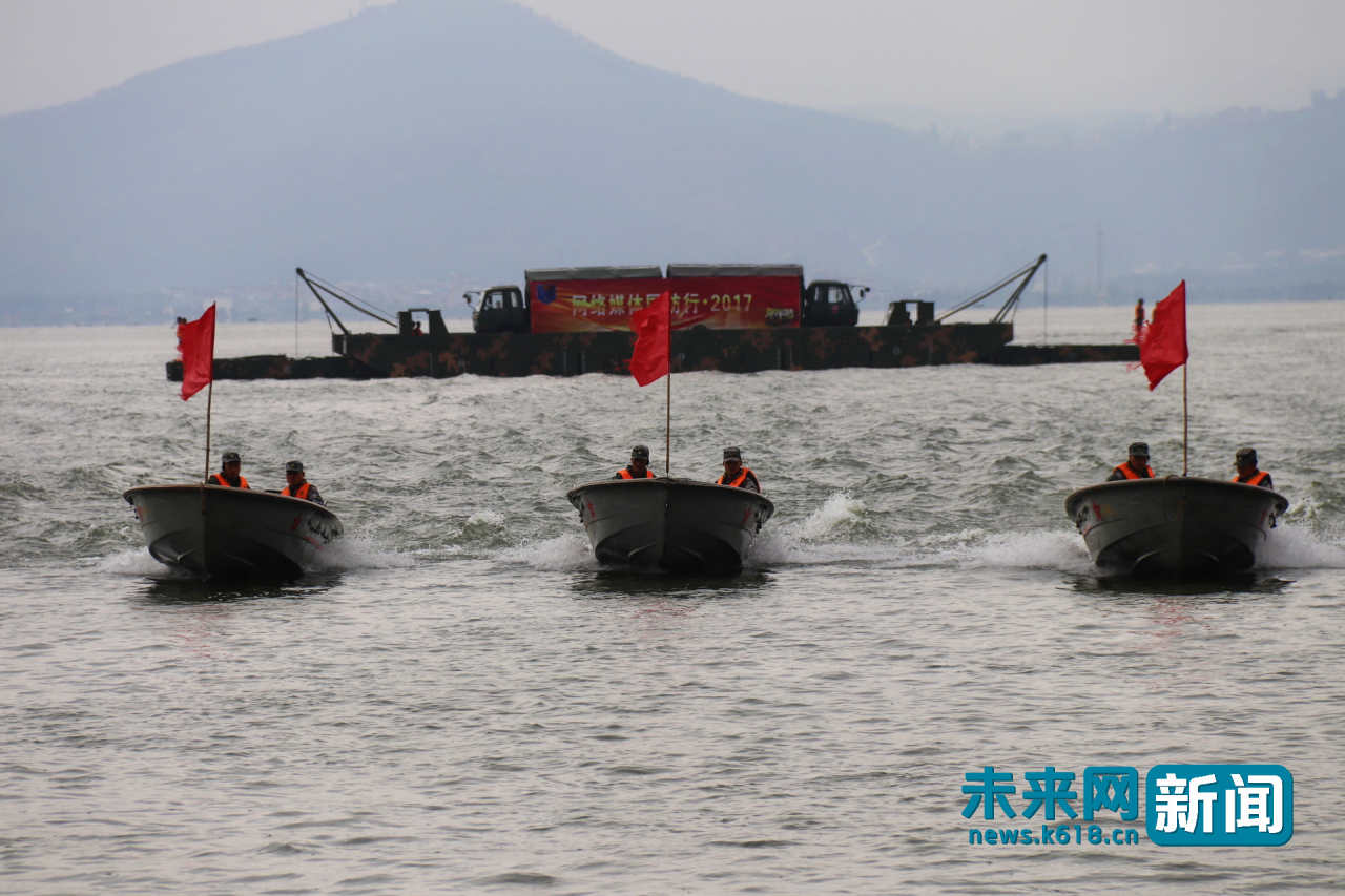 沖鋒舟、汽艇列隊(duì)駛來,而后開始“救援行動(dòng)”。