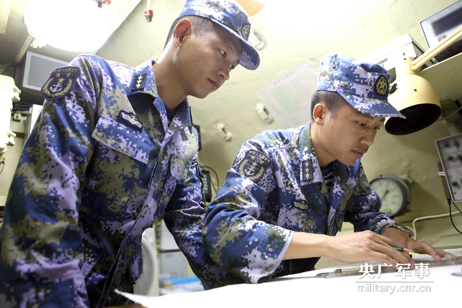 航海長(zhǎng)進(jìn)行海圖作業(yè) 張宗軒攝