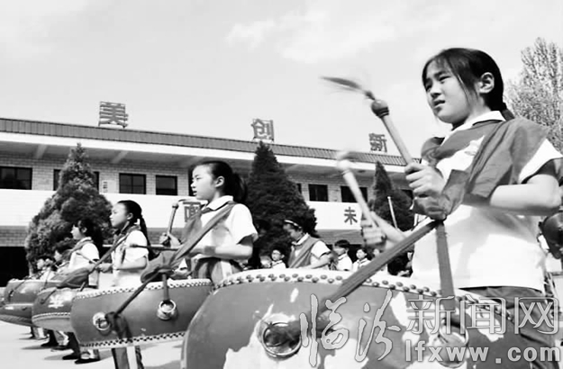 臨汾新聞網(wǎng)訊 威風(fēng)鑼鼓據(jù)傳起源堯、舜時(shí)期,距今已有四千多年的歷史。為將這一古老傳統(tǒng)藝術(shù)傳承給后代,今年三月,洪洞威風(fēng)鑼鼓藝術(shù)研究會(huì),經(jīng)多方努力,在洪洞縣白石小學(xué)組建了80人的少兒威風(fēng)鑼鼓隊(duì)。
