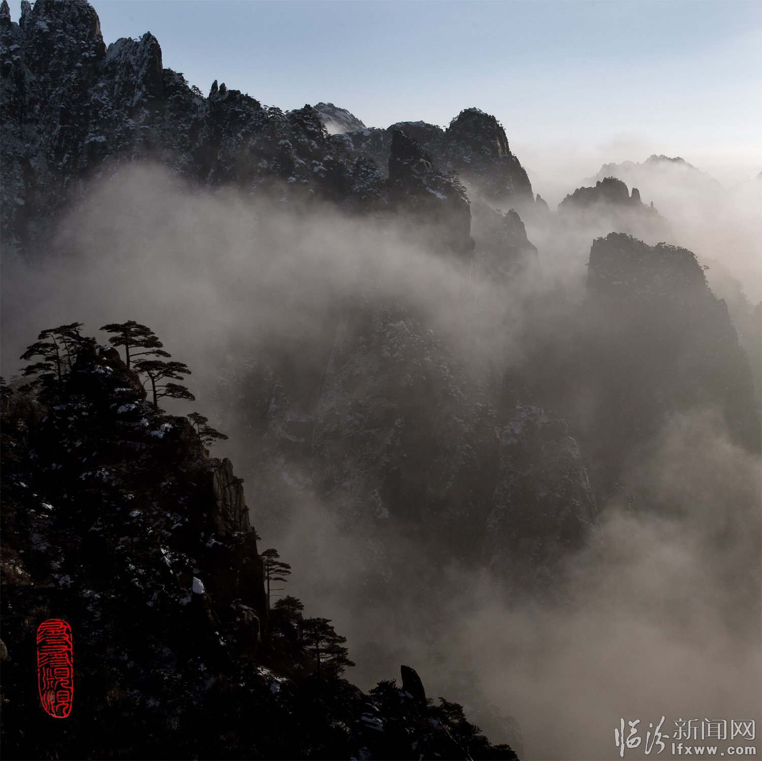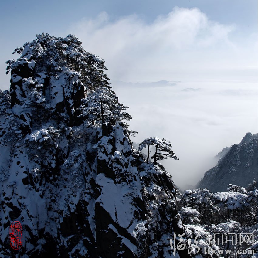奇松怪石云海飛,日出月升彩霞紅。