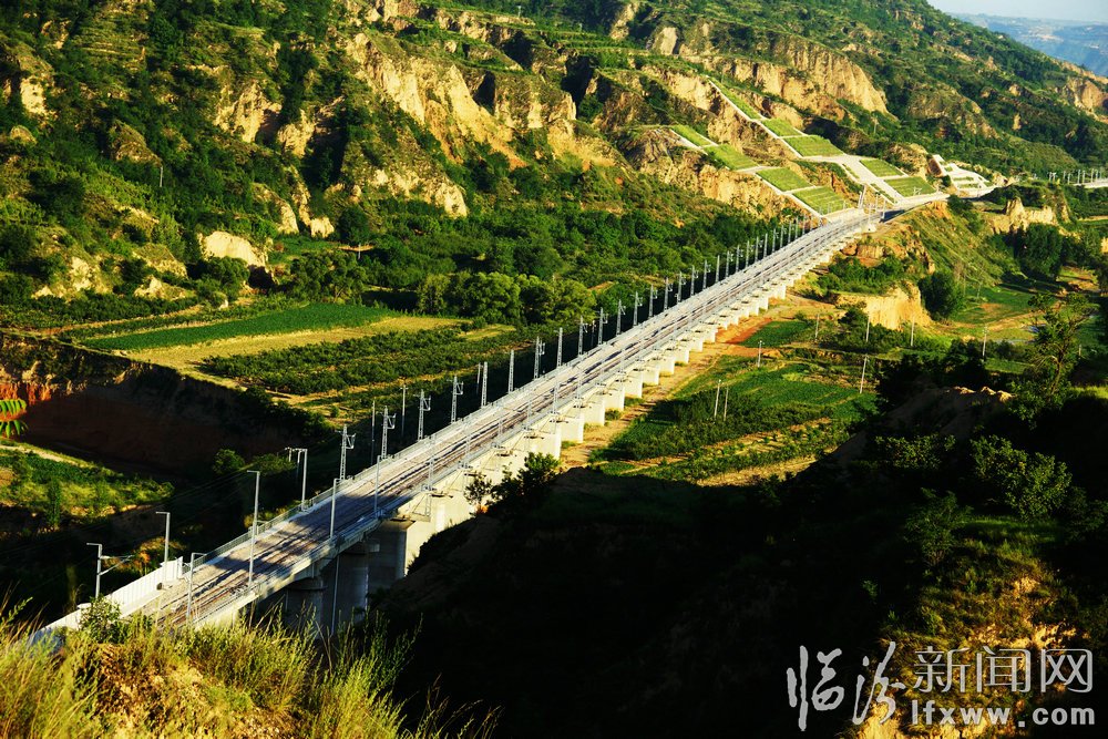 建設中的山西中南部鐵路出海通道,西起山西省呂梁市興縣瓦塘鎮(zhèn),終點為山東省日照港,全長1260公里,功能定位以煤運為主,兼顧客運,是我國重要的能源大通道,在隰縣境內(nèi)全長42.15公里。隰縣員家莊特大橋穿越苛西隧道群,橫跨洪永公路,是中南鐵路由北進入隰縣縣城的標志。目前,該橋進入鋪軌和電氣化施工階段。 郝微微 攝