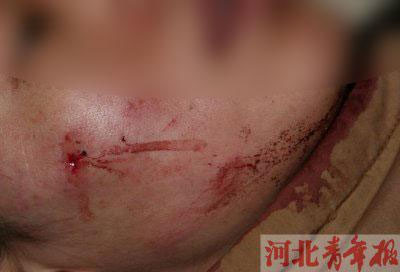資料圖片:圖為樂(lè)倩的臉部、頭部多處受傷。
