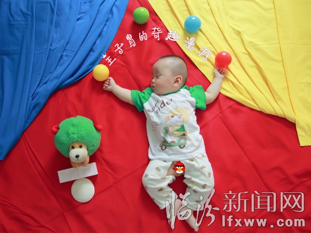 “當(dāng)我看到一個小女孩在各種童趣的畫面里甜睡,我一下子就被吸引了,仿佛走進(jìn)了她的夢境,頓時產(chǎn)生了為自己的孩子拍攝的強(qiáng)烈念頭?!狈姨m媽媽拍攝的創(chuàng)意照片《白日夢》,讓這位新晉辣媽蠢蠢欲動,當(dāng)時剛看過李安的電影《少年派的奇幻漂流》,因而我就想到了《王子胄的奇趣漫游》?!痹趦鹤与须辛鶄€月大的時候,史小娟第一次將想法付諸于行動。由于手頭的“資源”有限,構(gòu)圖和設(shè)計(jì)相對簡單,畫面中只有胄胄牽著玩具狗在散步。但是,胄胄的“出色”睡姿為這個平凡無奇的場景添色不少,尤其是看到他被媽媽“蒙在鼓里”,懵懂地流著小口水時,讓家人都忍不住去親親他的小臉。