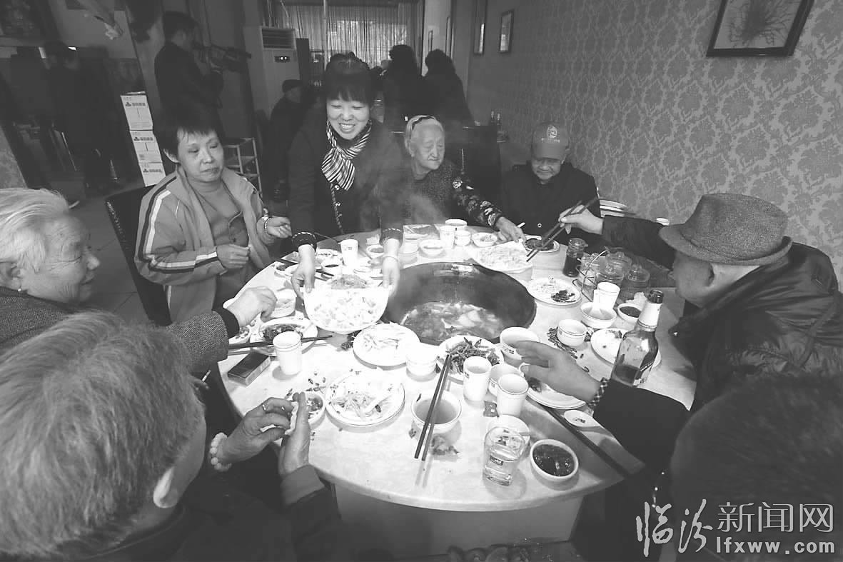 “讓我們一起舉起手里的酒杯,祝福老人羊年吉祥!”2月18日,臘月三十,秦蜀路引娣灘羊館愛(ài)心敬老年夜飯正式開始,在這千家萬(wàn)戶團(tuán)圓日子里,夕陽(yáng)紅老年公寓的老人們也感受著濃濃的情誼和年味……燉羊肉、燒油菜、拌三絲還有一盤盤熱氣騰騰的羊肉餃子……這是引娣灘羊館的工作人員為老人們精心準(zhǔn)備的年夜飯。