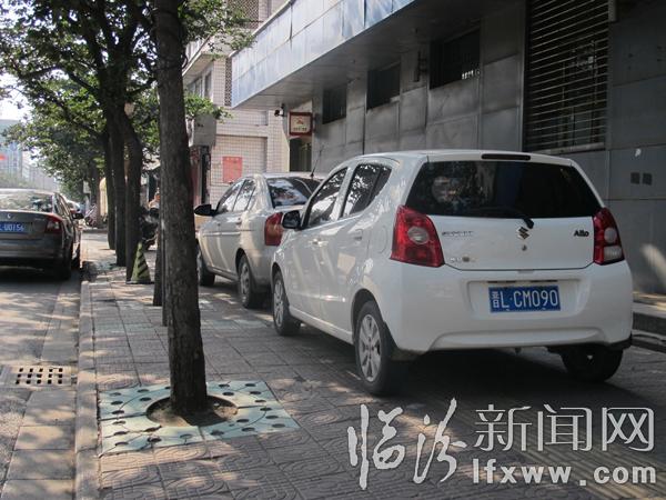 鼓樓東大街,機(jī)動(dòng)車(chē)停放在盲道上