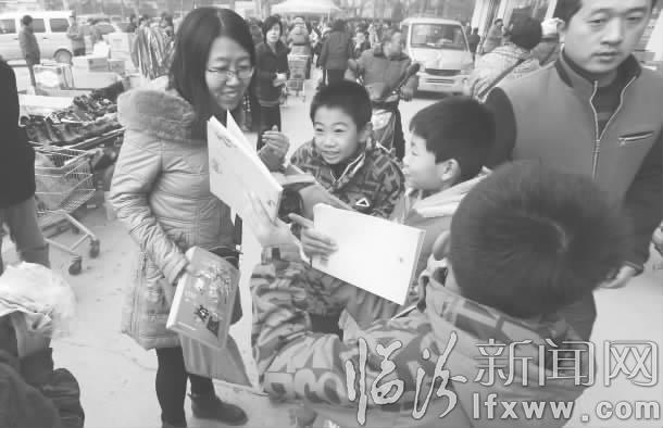 在市區(qū)工貿(mào)十字口,第一次參加愛心義賣活動的楊志懿顯得有些緊張,拿著早已準備好的兩本書遲遲不敢走向路人?!澳凶訚h,要勇敢一些,為了需要幫助的孩子,加油!”老師的鼓勵猶如強心針,頓時讓這個11歲的男孩充滿了能量,他勇敢地走向過往的人群:阿姨,買一本書吧,獻出一份愛心,幫助那些貧困的孩子。”