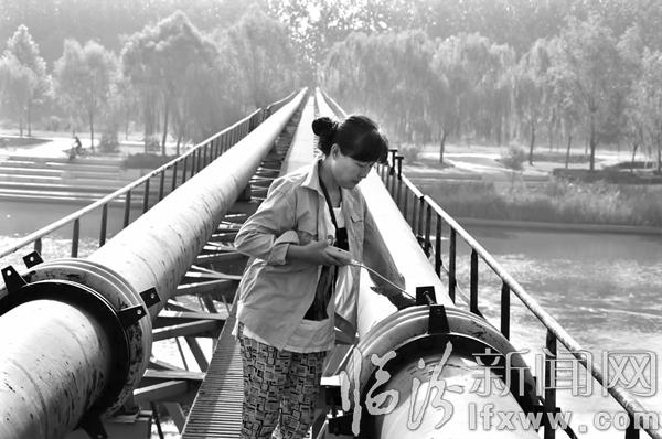 臨汾新聞網(wǎng)訊 我市跨汾河燃?xì)夤芫€長750米,與地面垂直距離6米以上,是燃?xì)夤芫W(wǎng)中重要組成部分。近年來,臨汾燃?xì)夤狙矙z班進(jìn)一步加強(qiáng)重要區(qū)域的巡檢力度,對跨汾河管線重點(diǎn)監(jiān)護(hù),巡檢人員無論刮風(fēng)下雨、嚴(yán)寒酷暑,堅(jiān)持全年365天“每天必巡”。圖為巡檢班工作人員謝曉梅正手持檢漏儀進(jìn)行管線檢測。