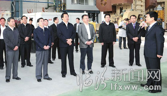 10月11日,省委書記、省人大常委會主任袁純清,省委副書記、省長王君帶領(lǐng)省觀摩檢查組在翼城高端鍛造園區(qū)檢查指導(dǎo)項(xiàng)目建設(shè)情況。圖為縣委書記李朝旗向省領(lǐng)導(dǎo)匯報工作。
