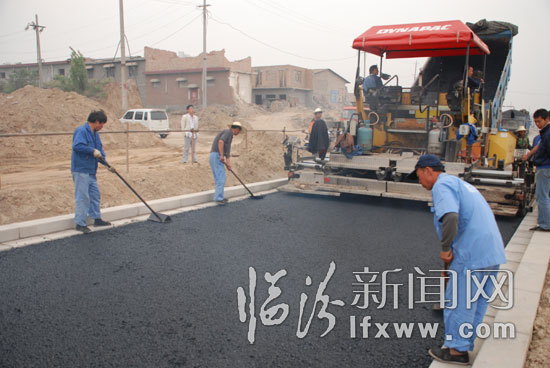 圖為建設(shè)者們正在緊張鋪筑瀝青。