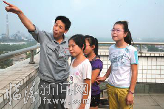 圖為山西大唐國(guó)際臨汾熱電公司工作人員帶領(lǐng)孩子們參觀廠區(qū)。