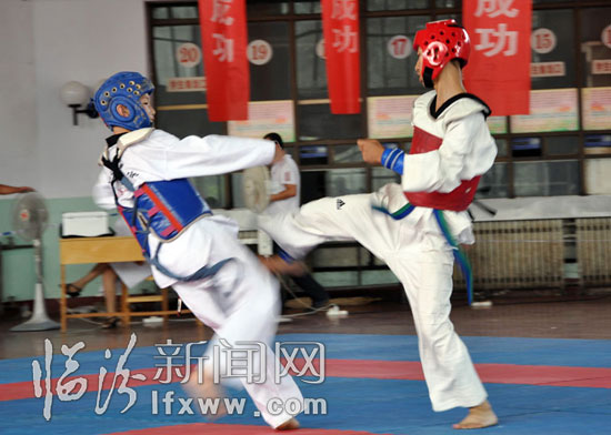圖為市第三屆跆拳道錦標(biāo)賽現(xiàn)場(chǎng)。
