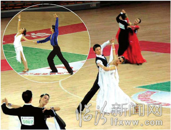 據(jù)悉,本屆比賽為期兩天,共有38個(gè)代表隊(duì),千余人參加了比賽,除了我省各地的代表隊(duì),還有來自山西體育職業(yè)學(xué)院、北京舞蹈學(xué)院附中、北京體育學(xué)院附中、武漢體育舞蹈運(yùn)動(dòng)學(xué)校、北京輔仁音樂舞蹈學(xué)校等省內(nèi)外專業(yè)院校的選手參賽,他們的加入不僅提高了大賽的競技水平和觀賞性,而且為進(jìn)一步提高我省的體育舞蹈運(yùn)動(dòng)水平起到了一定的促進(jìn)作用。圖為曉雪體育舞蹈代表隊(duì)的選手陳南西、任雨倩(中)在賽場上比賽時(shí)的情景。(王偉 田宜歡 攝)