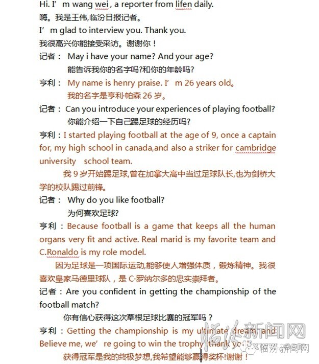 當天下午6時,決賽在益盛安地產(chǎn)足球隊和洪洞桌翔木業(yè)足球隊之間展開,前者僅上半場就打入4粒進球,洪洞桌翔木業(yè)士氣士氣受創(chuàng),下半場又攻入2球,臨近結(jié)束10分鐘,洪洞桌翔木業(yè)足球隊隊員亨利上場,積極拼搶,全場跑動,最終抓到對方門將出擊猶豫的失誤,將球輕松推入對方球門,改寫了“光頭”的命運,球迷紛紛鼓勁加油,隨后,“亨利加油”“小黑加油”響遍滿場,場上形勢大轉(zhuǎn),洪洞桌翔木業(yè)足球隊攻勢迅猛,雖屢次射門但未能攻入進球。亨利雖然未能完成夙愿,但微笑接受了這一現(xiàn)實。