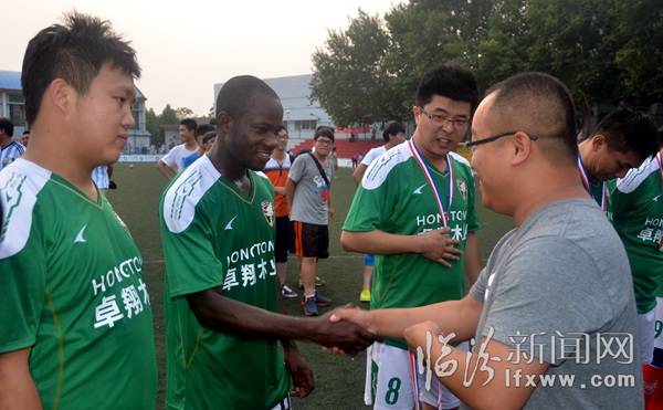 臨汾新聞網(wǎng)訊(記者 王偉 姚建 秦芳媛)“亨利,加油,小黑,加油,……進球了?!?月6日下午,我市2014年度草根足球聯(lián)賽在山西師范大學(xué)體育場落下帷幕,益盛安地產(chǎn)足球隊憑借強大實力摘冠,雖然洪洞桌翔木業(yè)足球隊屈居亞軍,但其隊員加拿大籍外教老師亨利在球場上大放異彩,贏得了全場球迷的喝彩。