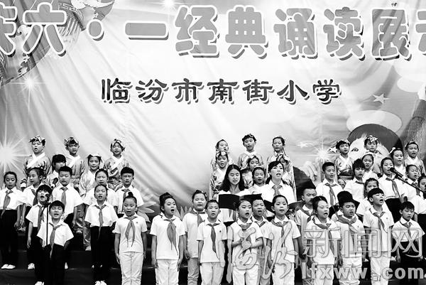 臨汾新聞網(wǎng)訊 5月18日,市區(qū)南街小學(xué)舉辦了“迎六·一經(jīng)典誦讀展示”活動。師生們在誦讀、吟唱、表演經(jīng)典過程中,充分領(lǐng)略了中國優(yōu)秀傳統(tǒng)文化的燦爛與魅力。圖為一(9)班全體師生正在表演詩歌朗誦。