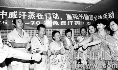 臨汾新聞網(wǎng)訊 10月7日,在堯都區(qū)中威汗蒸館,老年朋友們正在體驗(yàn)健康汗蒸。在重陽(yáng)節(jié)期間,中威盛世集團(tuán)在堯都區(qū)的3家加盟店開(kāi)展了為55——70周歲老人免費(fèi)汗蒸1周的活動(dòng),通過(guò)活動(dòng)的開(kāi)展,號(hào)召全社會(huì)愛(ài)老敬老。