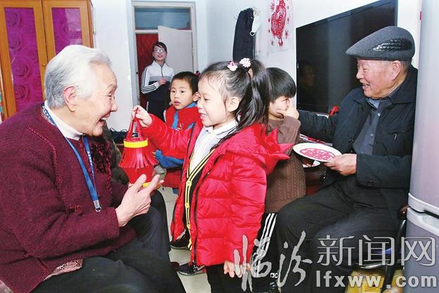 表演活動結(jié)束后,孩子們將自己做的賀卡、燈籠、剪紙等禮物送給了老人們。 記者 范韶華 攝