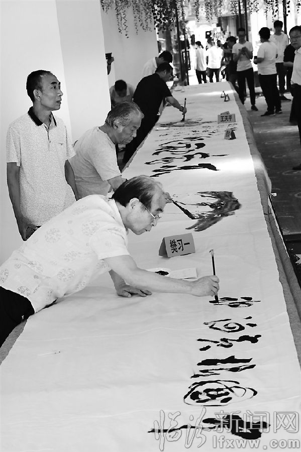此次活動(dòng)由市文聯(lián)、臨汾日?qǐng)?bào)晚報(bào)版、市美協(xié)、市書(shū)協(xié)聯(lián)合舉辦。據(jù)了解,創(chuàng)作完成的書(shū)畫(huà)百米長(zhǎng)卷,將在新百匯商業(yè)步行街中心廣場(chǎng)展出10天。隨后,在全市和旅發(fā)大會(huì)召開(kāi)期間巡回展出,全面展示我市書(shū)法界、美術(shù)界對(duì)旅發(fā)大會(huì)的熱情和情懷,對(duì)于展示臨汾文化旅游資源、打造文化旅游品牌,擴(kuò)大對(duì)外開(kāi)放、促進(jìn)我市經(jīng)濟(jì)社會(huì)轉(zhuǎn)型發(fā)展具有重要意義。