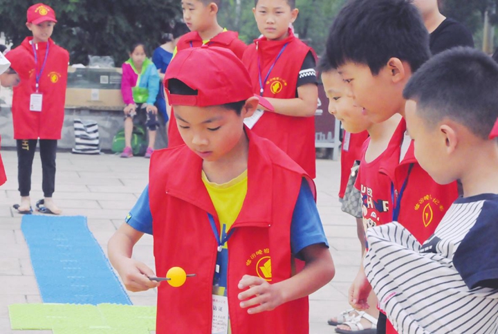 在“戰(zhàn)友”的鼓勵(lì)下,他終于找準(zhǔn)竅門(mén),成功化解危機(jī)。他興奮地分享經(jīng)驗(yàn):“保持兩根筷子平行,同時(shí)用寬的部位夾住乒乓球,一定不能著急?!泵突㈥?duì)果斷鎖定勝局,對(duì)戰(zhàn)的無(wú)敵隊(duì)則出師不利,在接力過(guò)程中頻頻失誤。該隊(duì)隊(duì)員不免有些著急,小記者陳昊東接棒之后,立即在指壓板上跳繩向前。雖然他痛得呲牙咧嘴,但仍在奮力堅(jiān)持。他堅(jiān)定地說(shuō):剛踩上指壓板時(shí),從腳底板傳來(lái)一陣鉆心的疼痛。