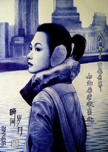 2009年,劉凱高中畢業(yè)后步入社會(huì),喜歡畫(huà)畫(huà)的他就用圓珠筆涂鴉,打發(fā)閑暇時(shí)光。我在高中時(shí),曾短暫學(xué)習(xí)過(guò)美術(shù)。雖然沒(méi)有堅(jiān)持下去,但是我對(duì)繪畫(huà)的興趣卻從未消退。如果用毛筆、鉛筆作畫(huà),感覺(jué)沒(méi)什么特別的。所以,我就想不走尋常路,用藍(lán)色的圓珠筆來(lái)搞創(chuàng)作?!眲P打趣是自己虛榮心作祟,才選擇了這條“非主流”的繪畫(huà)之路。