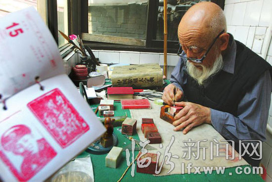 高聯(lián)民今年77歲,退休前一直在地方搞文化工作,他在6年前接觸到篆刻藝術(shù)后,便深深深迷戀上了這門藝術(shù)。