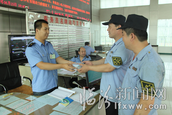 臨汾新聞網(wǎng)訊(通訊員 楊立江 龐繼福)暑運(yùn)來(lái)臨之際,為確保鐵路機(jī)車(chē)乘務(wù)員的身體健康,侯馬北機(jī)務(wù)段為每名機(jī)車(chē)乘務(wù)員配備裝有防暑降溫藥品的“小藥箱”,受到廣大職工的普遍歡迎。圖為6月15日,該機(jī)務(wù)段調(diào)度室出勤調(diào)度員正在為出勤機(jī)車(chē)乘務(wù)員發(fā)放防暑降溫“小藥箱”。