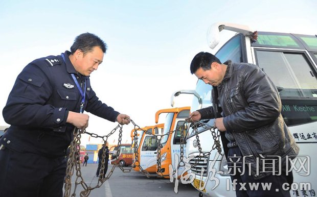 1月24日,臨汾交警支隊(duì)車管所干警班如利在對客運(yùn)車輛配備的防滑鏈進(jìn)行檢查。春運(yùn)臨檢開始以來,車管所民警加班加點(diǎn),對全市公路客車、旅游客車、校車等重點(diǎn)車型進(jìn)行全面檢查、檢測,力保春運(yùn)安全。
