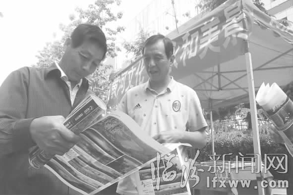 臨汾新聞網(wǎng)訊5月2日,我市知名攝影師傅慶華在解放路向路人講述永和乾坤灣變遷的故事。