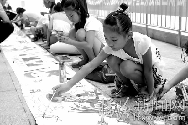 在浮山縣文體廣場舉辦的少兒繪畫比賽中,兒童們用他們天馬行空的想像力和靈巧的畫筆還原心中的抗戰(zhàn)英雄。崔建華攝